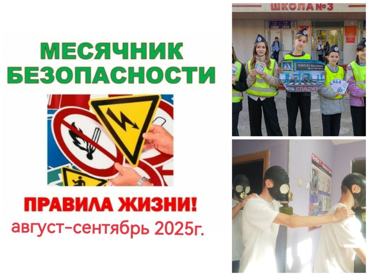 Во время Всероссийского месячника безопасности в школе №3 прошёл Единый день безопасности по разным направлениям: правила безопасности в быту, на дорогах, при угрозе и возникновении чрезвычайных ситуаций.
