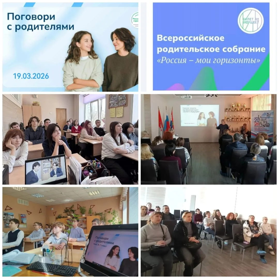 🌀«Билет в будущее» — профориентационный проект, который помогает школьникам ориентироваться в мире профессий и направляет к востребованным специальностям в регионе. ⚙19 марта 2026 г. занятие курса «Россия — мои горизонты» для учеников 6-11 классов было посвящено теме «Поговори с родителями: принимаем важное решение». ⚙ А вечером для родительского актива состоялось Всероссийское родительское собрание «Россия – мои горизонты» в рамках Единой модели профориентации. ✅ Оба мероприятия были посвящены вопросам профессионального выбора и будущего детей. 👨👩👧👦 Говорили о роли семьи в выборе дальнейшего обучения. Выпускники не всегла осознают свои особенности, сильные и слабые стороны. Именно близкие люди могут помочь лучше сориентироваться в выборе будущей профессии и просто поддержать во время прохождения важных жизненных этапов. 👌И ребята, и взрослые ещё раз убедились в том, как важна ранняя профориентация и полезны эффективные ресурсы, помогающие найти себя, такие, как проект «Билет в будущее». |